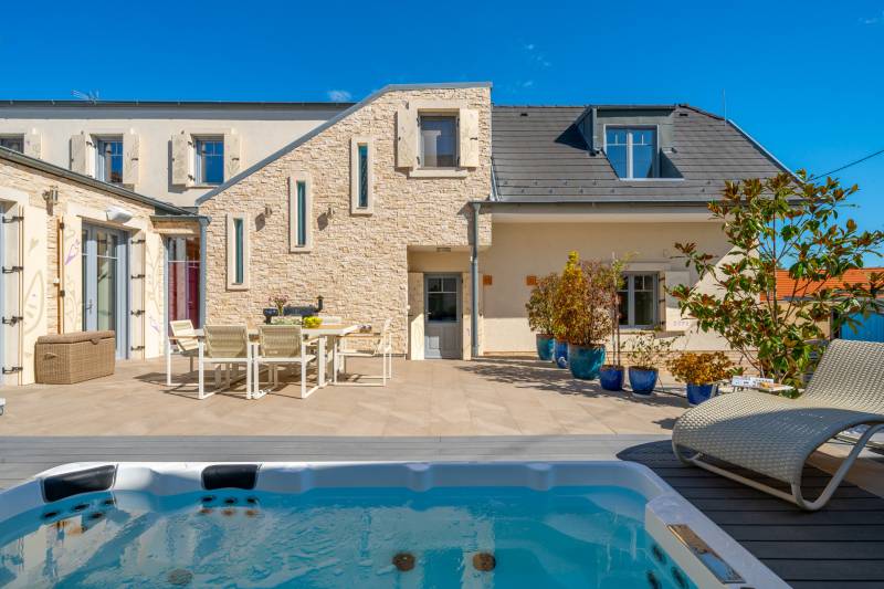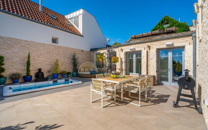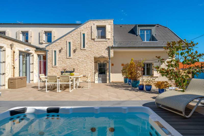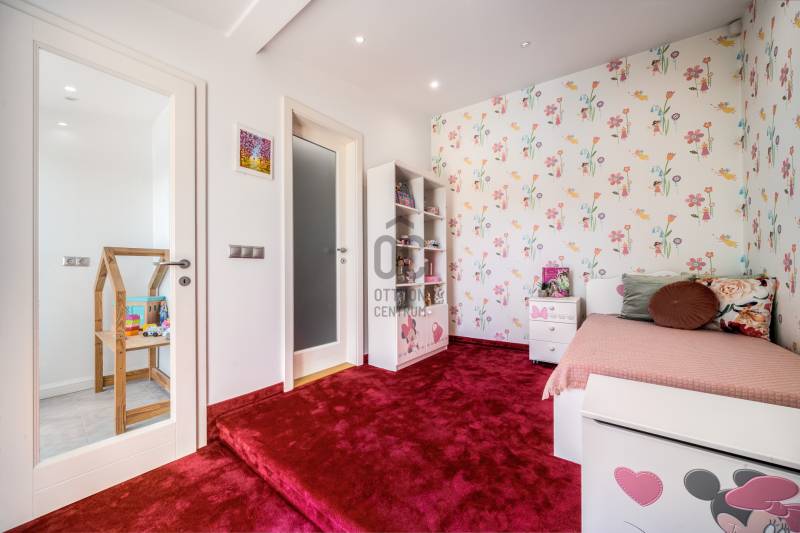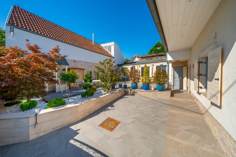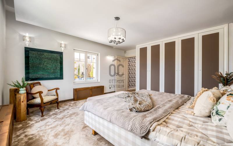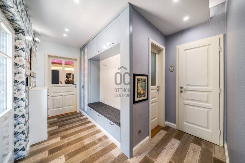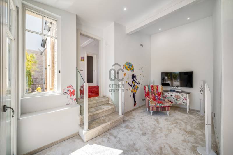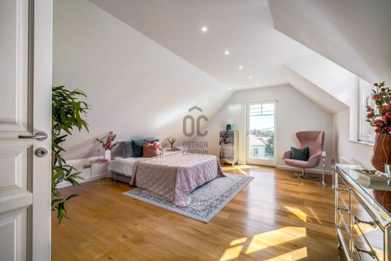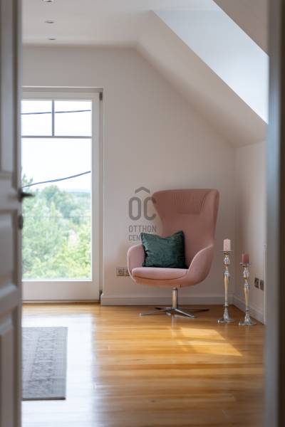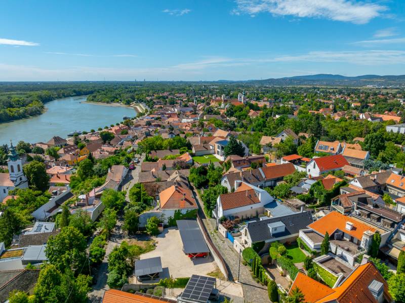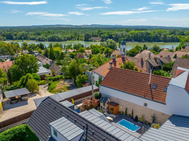 Egy hely, ahol reggelente a fény végigsétál a nappali falán, ahol minden szegletből árad valami finom, derűs egyediség. Üdv itthon!RÖVIDENAz Óváros szélén, egy eldugott, bájos kis utcácskában – a Kapás közben – kínálunk eladásra egy különleges hangulatú, kétszintes, 200 m²-es családi házat, 5 szobával, 3 fürdőszobával, saját, gondozott kerttel és lenyűgöző panorámával a Dunára. A 2013-ban épült otthon kiváló műszaki állapotban van, és minden részletében érezhető: olyan családnak készült, akik nemcsak lakni, hanem élni szeretnének benne.Szentendre – a Dunakanyar bohém szépsége – Kőbe faragott történelem, galériák és macskaköves utcák világa, amely egyszerre klasszikus és eleven, csendes és vibráló. Itt a levegő is egy kicsit más – tele van ihlettel, és mintha minden sarkon egy régi történet suttogná tovább magát a házfalakon át.A Kapás köz egy csendes, szinte rejtett kis mellékutca az Óváros peremén, ahol a város hangulata még emberléptékű. Innen néhány perc séta a Duna-part, ahol a reggeli kávé után akár futni, akár csak megállni egy pillanatra is jólesik. A Pótkulcs Kávézó barátságos, kissé bohém belső terében festmények, könyvek és illatok keverednek, míg a Szamos Marcipán Cukrászda teraszán egy krémes mellett könnyen elnyúlik a délelőtt.Aki aktívabb kikapcsolódásra vágyik, a közeli Wiking Yacht Clubban evezhet, csónakázhat, vagy egyszerűen csak élvezheti a Duna közelségét és a vízparti levegőt. A Japánkert várja a természet és botanika szerelmeseit - a gondosan tervezett növényekkel és kanyargós ösvényeivel minden évszakban külön kis világ, és egy délutáni séta vagy egy nyugodt olvasás tökéletes helyszíne.A közelben található Czóbel Park hangulatos sétányai a helyiek kedvenc pihenőhelyei közé tartoznak, míg a Szoborpark különleges, kültéri művészeti élményt nyújt – a szentendrei művészeti hagyományokat szó szerint a természetbe ágyazva. Ezek a helyek nemcsak kellemes programlehetőségek, hanem olyan terek, ahol a város lüktetése lelassul, és teret enged az elmélyülésnek.A hétvégi reggelihez a Pékműhely ropogós kovászos kenyereit vagy fahéjas csigáit érdemes hazavinni – itt mindig frissen sül, illatos, és olyan, mint egy falatnyi gondoskodás. Aki szereti az eldugottabb helyeket, a Menta Terasz (a Bükkös-patak mellett) egy kis zöld zug, ahol egy limonádé mellett nézni a víz csobogását felér egy meditációval.Miközben Szentendre ennyi inspirációt kínál, a mindennapok intéznivalói is könnyen elérhetők. A közelben minden megtalálható, ami a családi élethez szükséges – iskola, óvoda, gyógyszertár, kisboltok –, Budapest belvárosa pedig a HÉV-nek és a 11-es főútnak köszönhetően 30–40 percen belül elérhető, akár autóval, akár tömegközlekedéssel. Így a napi ügyintézés, a munkába járás vagy akár egy esti színház sem jelent kihívást – a visszatérés pedig mindig békét jelent majd.AZ ÉPÜLET – Kortárs harmónia az óváros szélénA ház építészeti megoldásai egyszerre modernek és emberléptékűek. Tégla falak, nagy ablakok, izgalmas szinteltolások, praktikus alaprajz – mindez egy olyan térélményt teremt, amely követi a benne lakók ritmusát. A délkeleti tájolásnak köszönhetően a reggeli fény végigkíséri a napod, miközben a kertre és a folyóra nyíló kilátás folyamatos kapcsolatban tart a természettel.A 450 m²-es, gondosan kialakított kert nemcsak szép, hanem élhető is: intim, mégis nyitott, játékra és pihenésre egyaránt alkalmas. A kert közepén elhelyezett medence egyszerre ad vizuális fókuszt és valódi nyári örömöket. És igen: itt még az esti fények is különös derűt vetnek a ház falaira.A ház alatt pince és tároló is található – műhelynek, festőteremnek, zeneszobának vagy egyszerűen csak annak, amire épp szükség van.A TEREK A földszinten egy tágas, világos közösségi tér fogad: nappali, étkező és konyha egyetlen nagy, átjárható világban, amit a kert felé nyíló terasz tesz teljessé.A lépcső nemcsak szinteket, hanem hangulatokat is választ el: az emeleten meghúzódó hálószobák nyugodt, intim zónát alkotnak. Három fürdőszoba segíti a gördülékeny reggeleket, és elegendő hely van ahhoz, hogy mindenki megtalálja a saját ritmusát.A 260 cm-es belmagasság, a letisztult vonalak, a gondosan válogatott burkolatok és a meleg tónusú fények mind hozzájárulnak ahhoz, hogy ez az otthon ne csak funkcionális, hanem érzelmileg is valódi otthon legyen.MIÉRT ÉPP EZ A HÁZ?Mert van benne lélek.Mert képes egyszerre művészi és praktikus lenni.Mert itt minden reggel máshogy kék a Duna.És mert van valami benne, amit nem lehet számokkal, négyzetméterekkel vagy felsorolásokkal leírni – csak az tudja, aki belép.Ez a ház ideális választás mindazoknak, akik kicsit másképp gondolkodnak. Nagycsaládosoknak, kétgenerációs együttéléshez, vagy azoknak, akik egy élettel teli, inspiráló környezetben képzelik el jövőjüket.MEGHÍVÁSHa érzi, hogy az otthon nemcsak egy cím, hanem egy érzés is…Ha szereti, ha egy ház mesél…Ha kíváncsi arra, milyen a Duna kékje Szentendrén, egy csendes kertből nézve…Jöjjön el, és ismerje meg ezt a különleges otthont személyesen is.